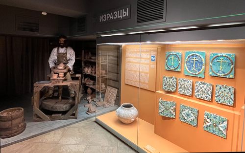 Далее посетители могут путешествовать по разделам выставки, рассказывающим о разных строительных материалах: «Строительная керамика», «Изразцы» (здесь представлены расписные керамические плитки для украшения церквей и печей), «Металл», «Слюда».