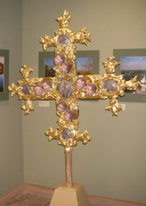 В виде слайд-фильма Е. Давыдова представила краткую историю русской деревянной скульптуры, а также обзор коллекции В. Абрамова, обратив внимание на некоторые экспонаты. Например, один из шедевров, который можно увидеть на выставке, – это выносной крест, выполненный в барочном стиле, с изображением Распятия и Воскресения, украшенный объемными головками херувимов. Этому памятнику нет аналогов, отметила С. Гнутова.