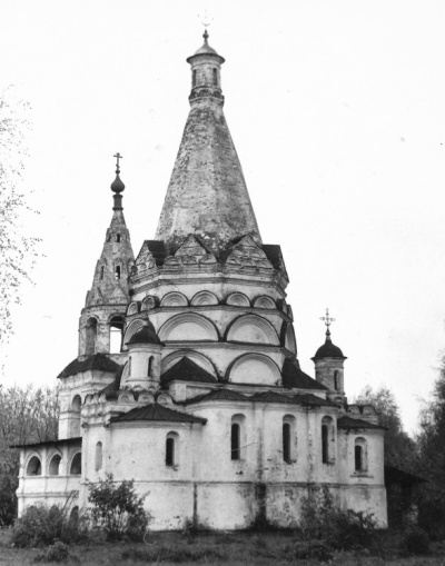 Изначальный облик храма значительно отличался от современного: это был восьмерик на четверике, увенчанный стройным шатром, без приделов и колокольни. В таком виде его сходство с традиционными деревянными шатровыми храмами Руси было особенно очевидным. Строили церковь, вероятно, не местные, а столичные мастера, что выдает их знакомство с московской архитектурной школой.