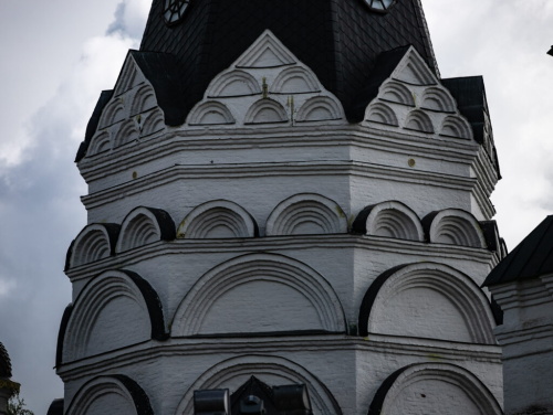 Богоявленская церковь – классический образец «годуновского» стиля с характерной монументальностью, ясностью форм и сдержанным декором. Храм стоит на невысоком подклете (сегодня там располагается зимний храм с барочными царскими вратами второй половины XVIII века). Основной объем – это массивный четверик, на котором возвышается восьмерик, разделенный на три яруса кокошников. Восьмерик венчает высокий глухой шатер, в основании которого – своеобразные фронтоны, составленные из мелких кокошничков. Этот приём роднит храм с рядом московских церквей того же периода.