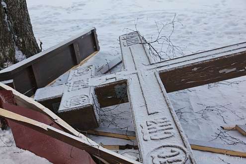 Неизвестные вновь спилили поклонный крест, установленный на месте церкви святого мученика Виктора в Архангельске
