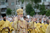 Патриарх Кирилл совершил литургию на площади перед кафедральным собором Череповца