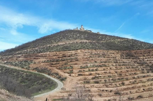 Грузия: на террасах горного монастырского комплекса привиты виноградные лозы различных пород
