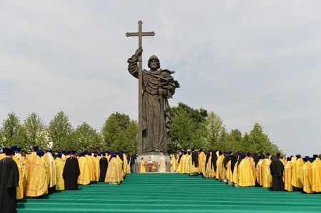 Патриархи Александрийский Феодор и Московский Кирилл совершили молебен у памятника равноапостольному князю Владимиру в Москве